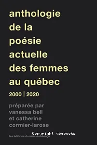 Vanessa Bell, Éditeur scientifique ; Catherine Cormier-Larose, Éditeur scientifique | Les éditions du remue-ménage | DL 2021Cette anthologie présente le travail de 55 poètes qui, par leurs œuvres, définissent les contours de la poésie québécoise actuelle. Outil de référence, ce livre propose de découvrir et de célébrer dans une approche intersectionnelle et intergéné[...]![]()